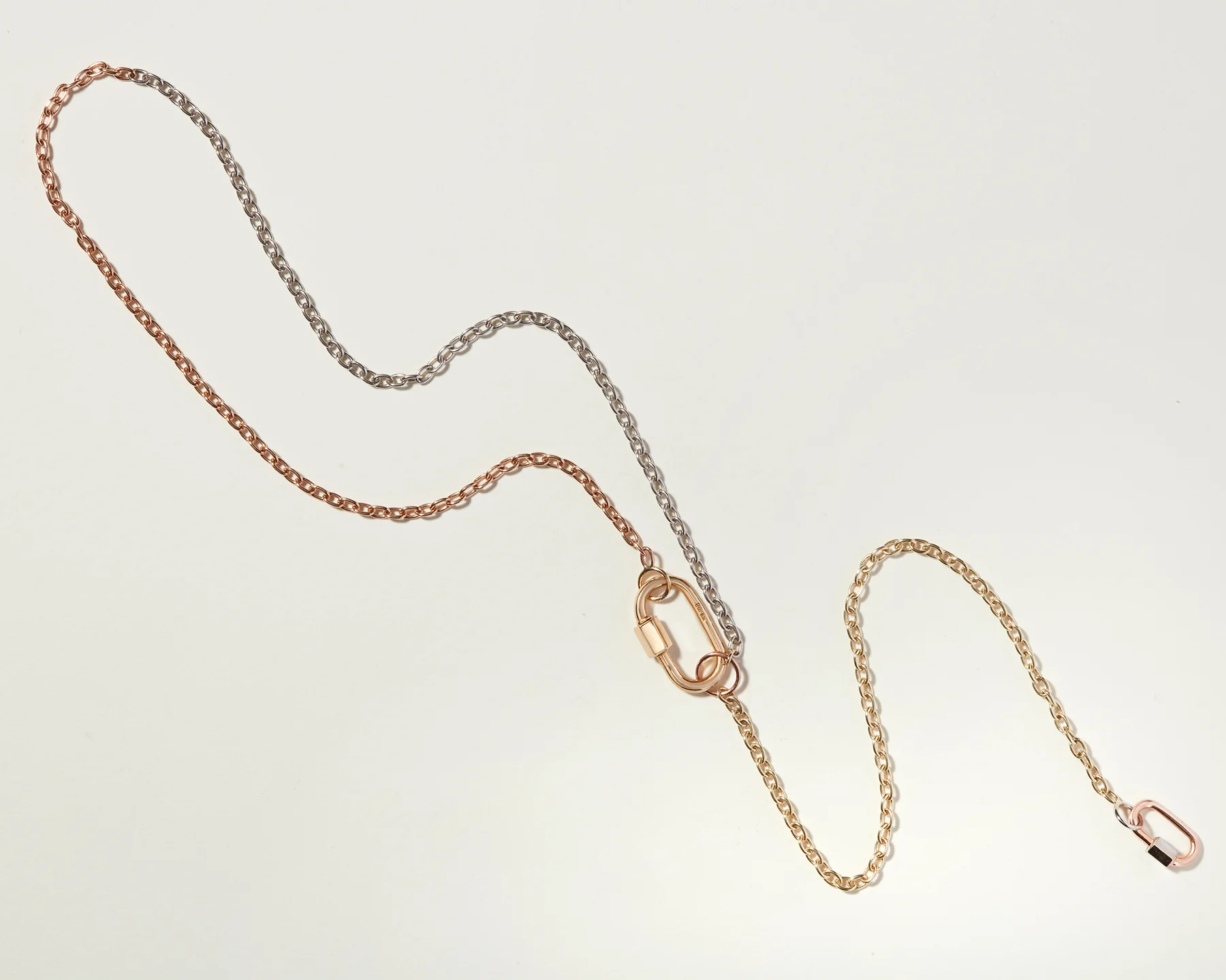 Our Pulley Chain with 3 loops, and 3 colors of gold --14k Rose, Yellow, and White Gold