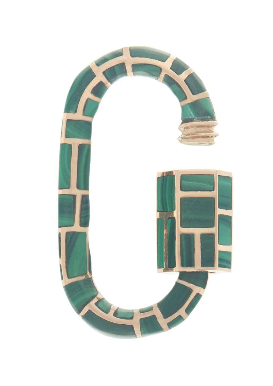 The All Inlay Lock measures 3.6cm x 2cm with a thickness of 3.7mm. Closure is 8.5mm with 64 inlaid Malachite stones.