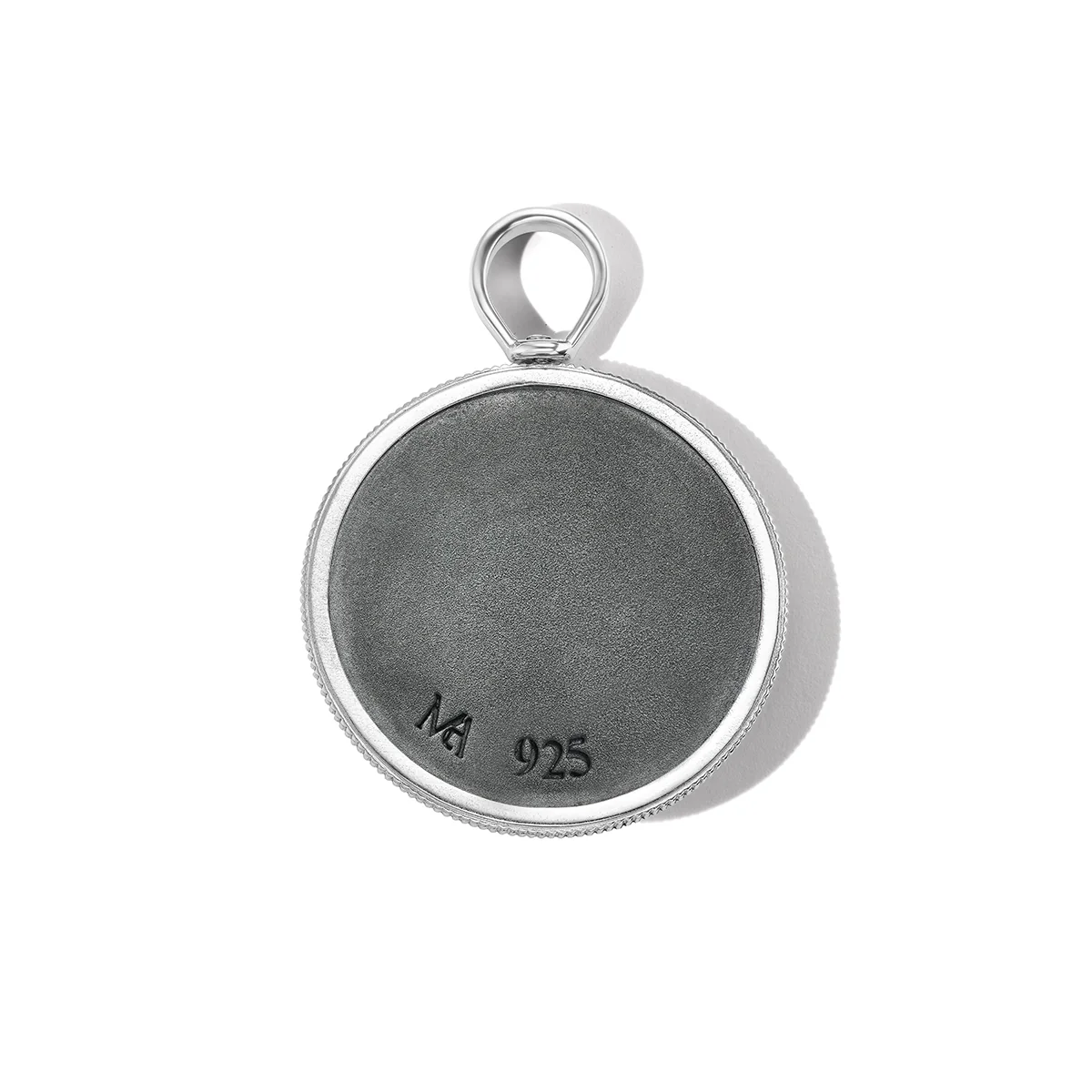While all of our pieces are optimized for play, our charms are where we tend “goof around" the most. Sometimes they’re made from things Marla has collected over the years—available in very small quantities—and sometimes they’re like this: just a few of our most beloved Lock styles, stacked up in one delicious pile on one side of a swiveling medallion. The other side is perfect for engraving. There is no front or back—thanks to the swivel, also great for fiddling. This charm is oxidized and available in all silver (exclusively at our showroom in New York City and marlaaaron.com) or mixed metal (silver/yellow gold or silver/rose gold).