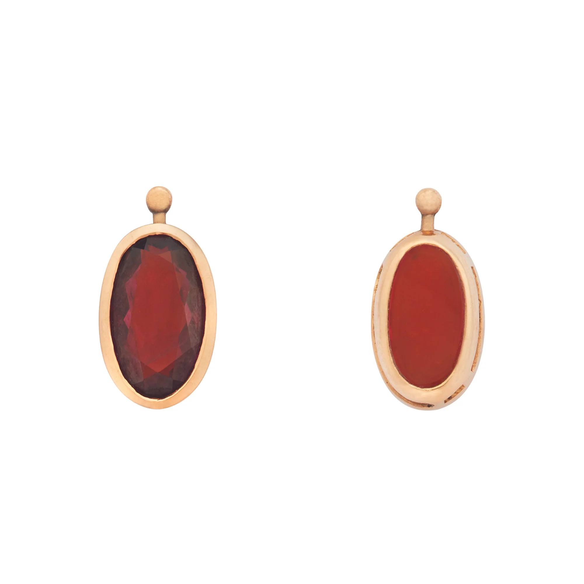 Oval faceted Rhodolite one side and Carnelian on the other. Can be added to Discs or worn on their own with the Earring Bases.